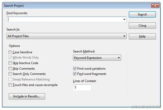 自动显示对函数、变量、类等的引用,使用高级搜索功能在整个项目中进行搜索。