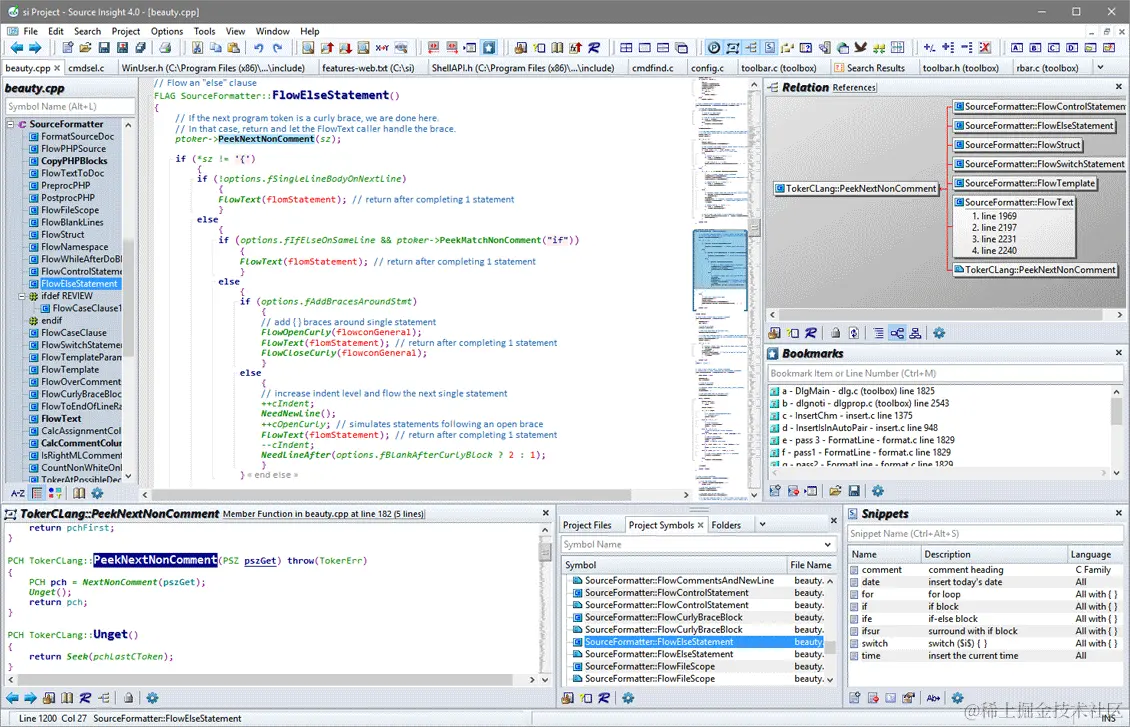 提供了便捷的搜索功能,能够快速查找及定位指定的标识符。对于函数,可查看返回类型、参数和引用列表,点击后可立即进入该实例。对于类可查看成员变量和函数、包含列表以及相关指标。还可以通过信息浏览窗口或右键单击代码中任何已命名的实体来访问图表。使用蝴蝶图可以快速查看调用或被调用特定函数的所有内容。