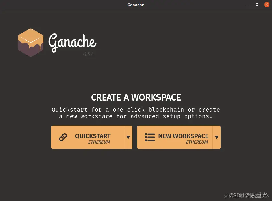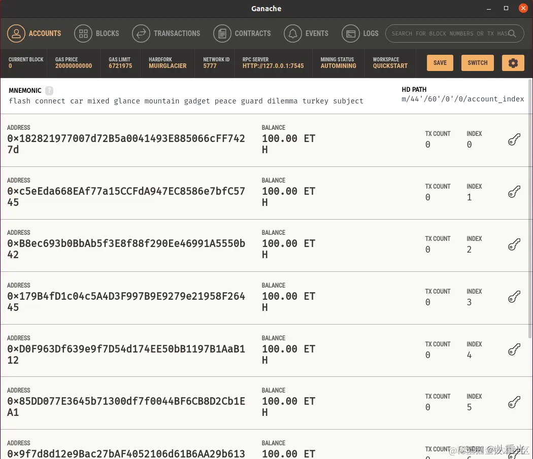 在启动界面选择QUICKSTART即可运行ganache测试网络。