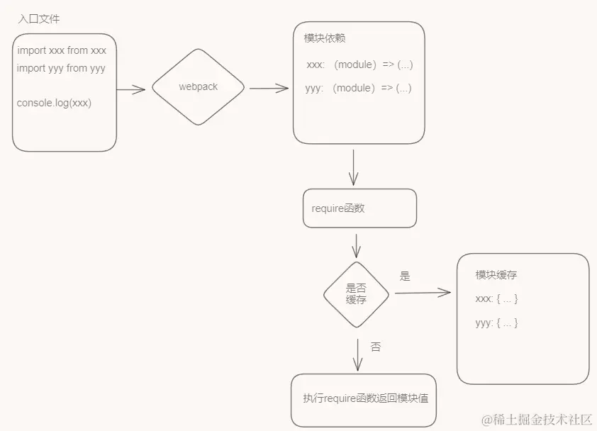 - 模块规则处理:如果扫描到使用了import或者export进行导出,就说明此模块是EsModule,会进行特殊处理,如果不是则直接使用模块内容,最终都会把所有的模块值保存为 { exports: { ... } } 形式进行缓存,还是CommonJS规范;