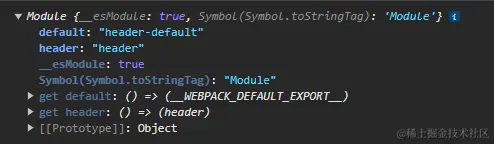 此时入口文件为EsModule规范,但是模块为CommonJS规范,所以再依赖分析中header.js模块不会改变,主要在运行代码时候需要转化EsModule,并且标注入口文件也是一个EsModule