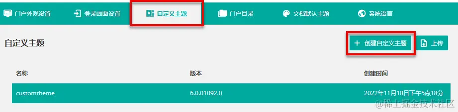 在系统后台中打开系统外观界面。然后在门户外观设置下面找到系统主题,单击下拉箭头,选择自定义系统主题,并保存设置。