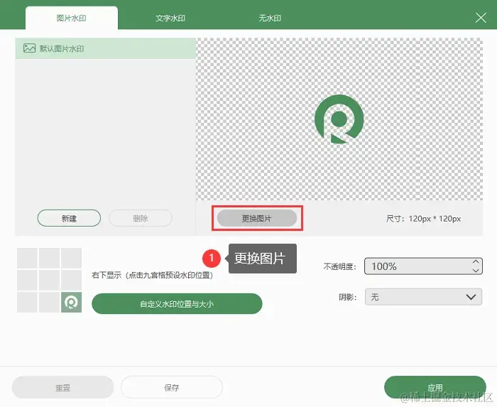 步骤3:如果您想为视频添加一些独特的标记,可以使用录制水印功能,有图片水印与文字水印两种方式,并可以自定义位置和大小。