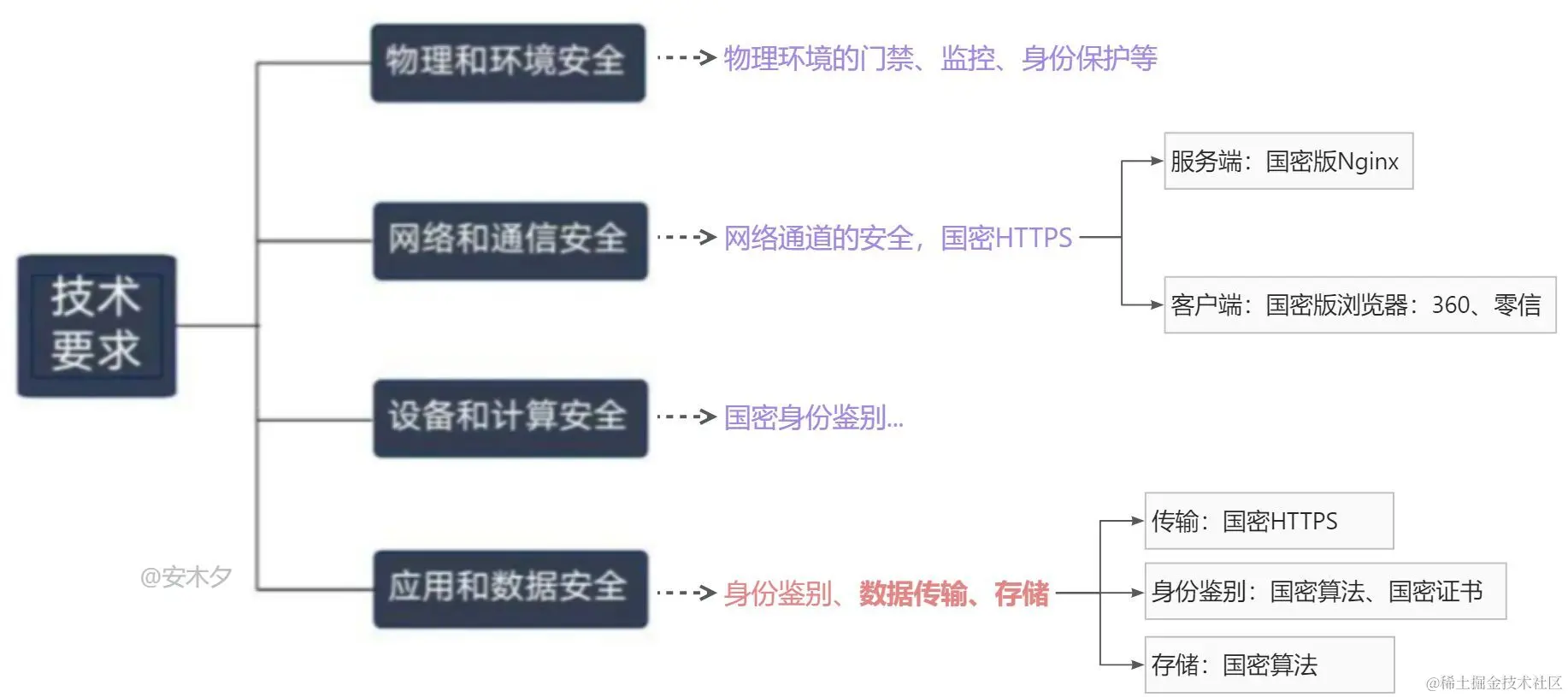 - 对于数据加密,就主要是SM2(非对称)、SM3(摘要)、SM4(对称)三类算法了,替换掉以前常用的RSA、MD5、SHA算法。