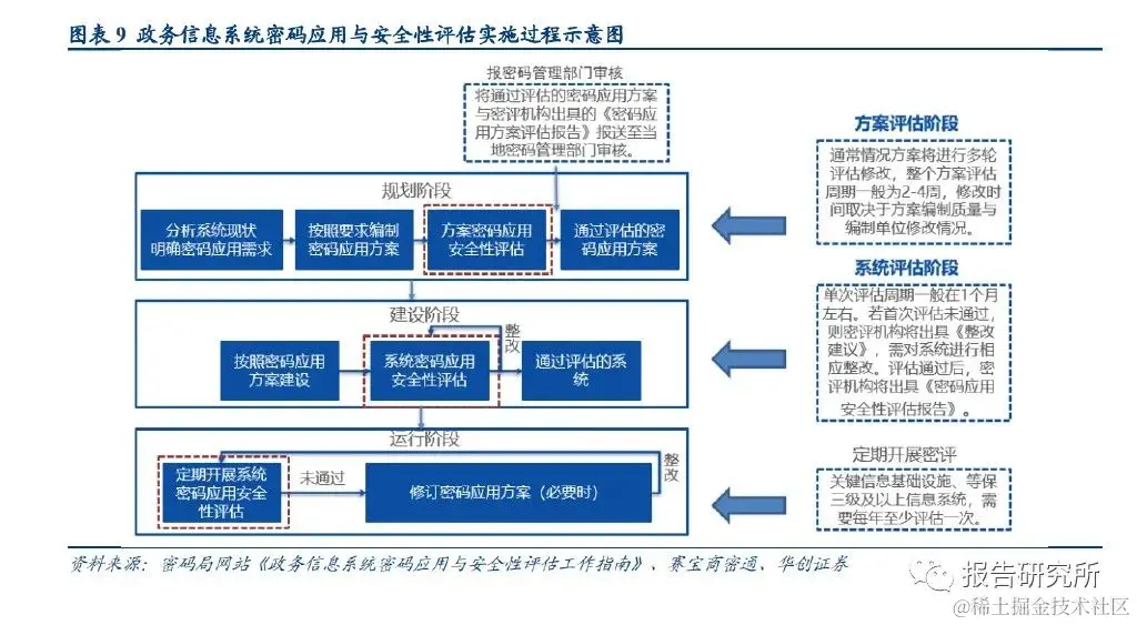 密评的实施过程:方案评估》系统测试》定期检查,密评的执行是由专门的密评机构(公司)进行的。