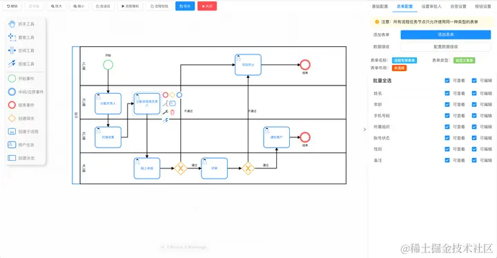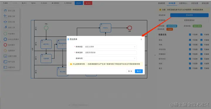 流程引擎中需要对流程节点基础配置,节点表单配置、布局配置、字段权限配置,设置发起人和审批人等角色,在配置流程节点表单时,需要根据该节点的角色选择正确的表单。例如,发起人节点和审批人节点所看到的表单内容应该有所不同,我们在流程设计时就需要根据不同场景灵活进行配置对应的表单并设计。