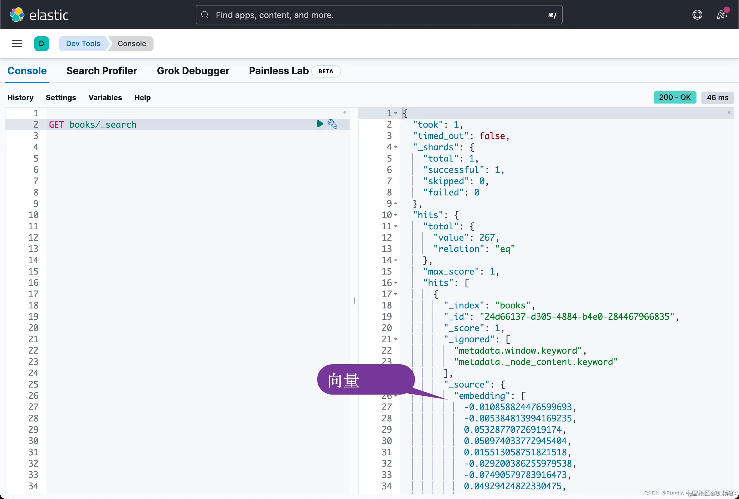 - 不仅仅是矢量数据库:Elasticsearch 是一个构建在 Apache Lucene 之上的开源搜索和分析引擎。 它旨在处理大量数据并提供近乎实时的搜索功能。