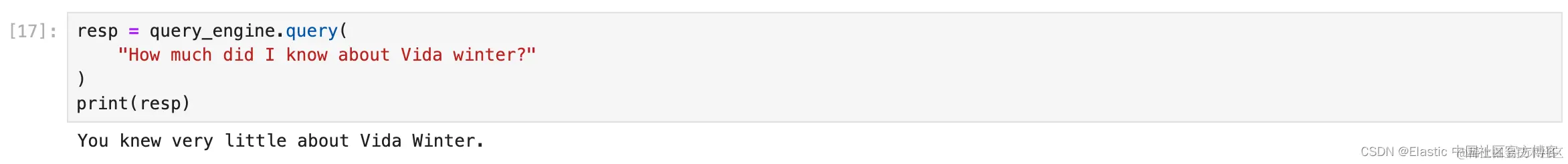 我们已经有了引擎,让我们尝试从知识库中向它询问一个非常具体的问题: