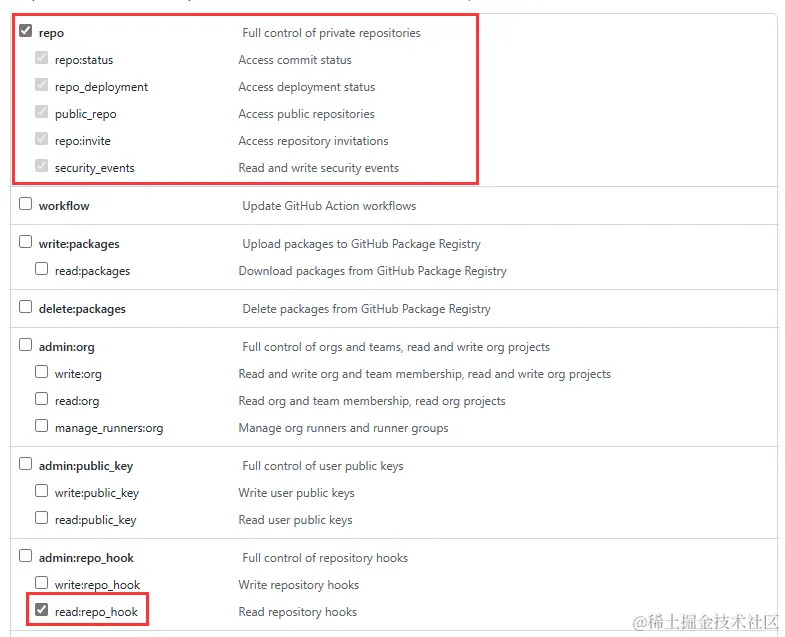 这里用到了github token,在Personal Access Tokens (Classic) (github.com)这里生成,点击Generate new token,勾选上这些选项就可以点击生成了,这个token只会给你展示一次,复制下来自己存好。