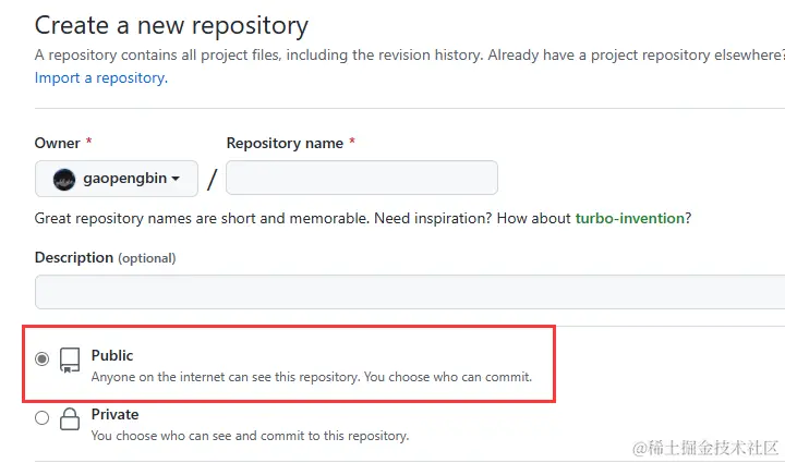 用来存放项目,注意一定要public,不然后面开启pages的时候就不行了。