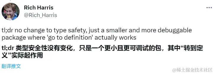 其实,Turbo 并不是第一个放弃 TypeScript 的前端框架,今年 3 月,Svelte 团队计划将会从目前使用的 TypeScript 迁移到 JSDoc。Svelte 创始人 Rich Harris 曾在推特上说道:Svelte 并没有放弃类型安全,而是改用 JSDoc,以减少包体和代码编译时间,依旧支持使用 tsc 编译器检查类型。