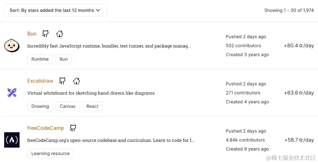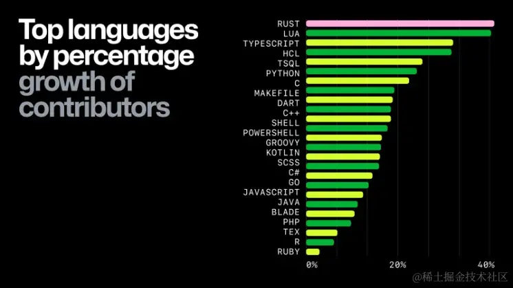 - 在前端基础建设领域,Rust 在前端的影响力越来越大:基于 Rust 的构建工具 Respack 和 代码检查工具 Oxlint 正式发布、 Vite 官方也正式宣布计划使用 Rust 重构 Vite,替换掉原有的 Esbuild 和 Rollup。此外,前端全能工具包 Bun 正式发布 1.0 版本,成为 JavaScript 年度明星项目。