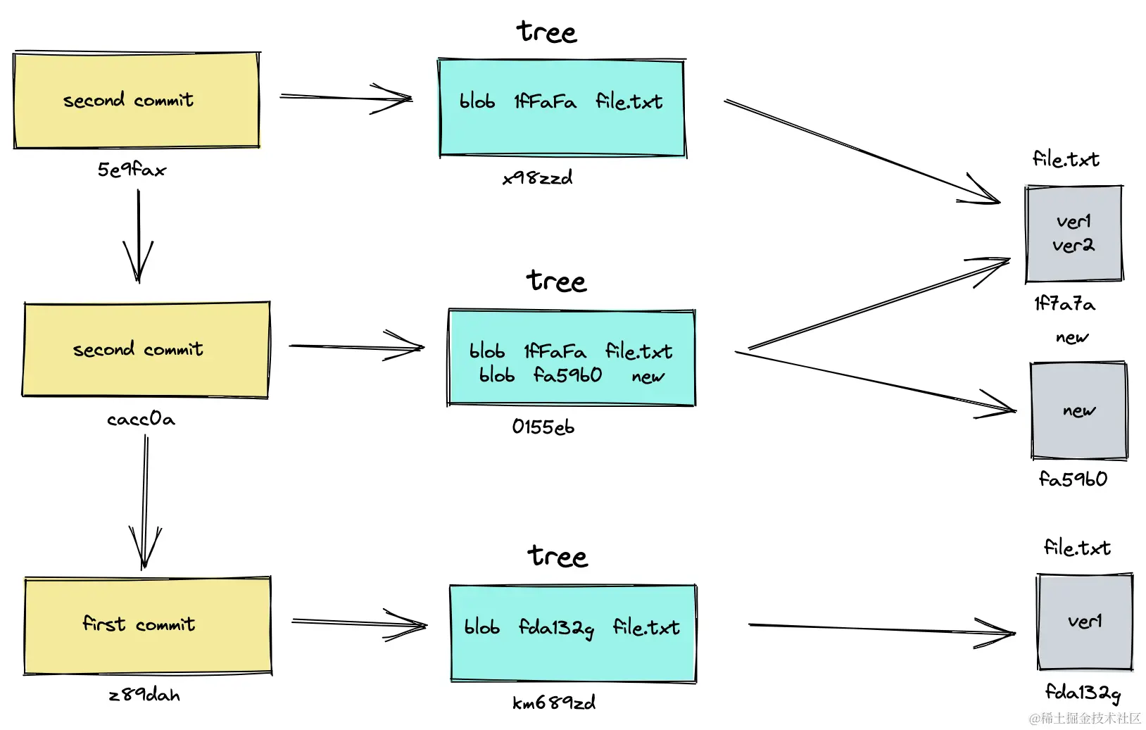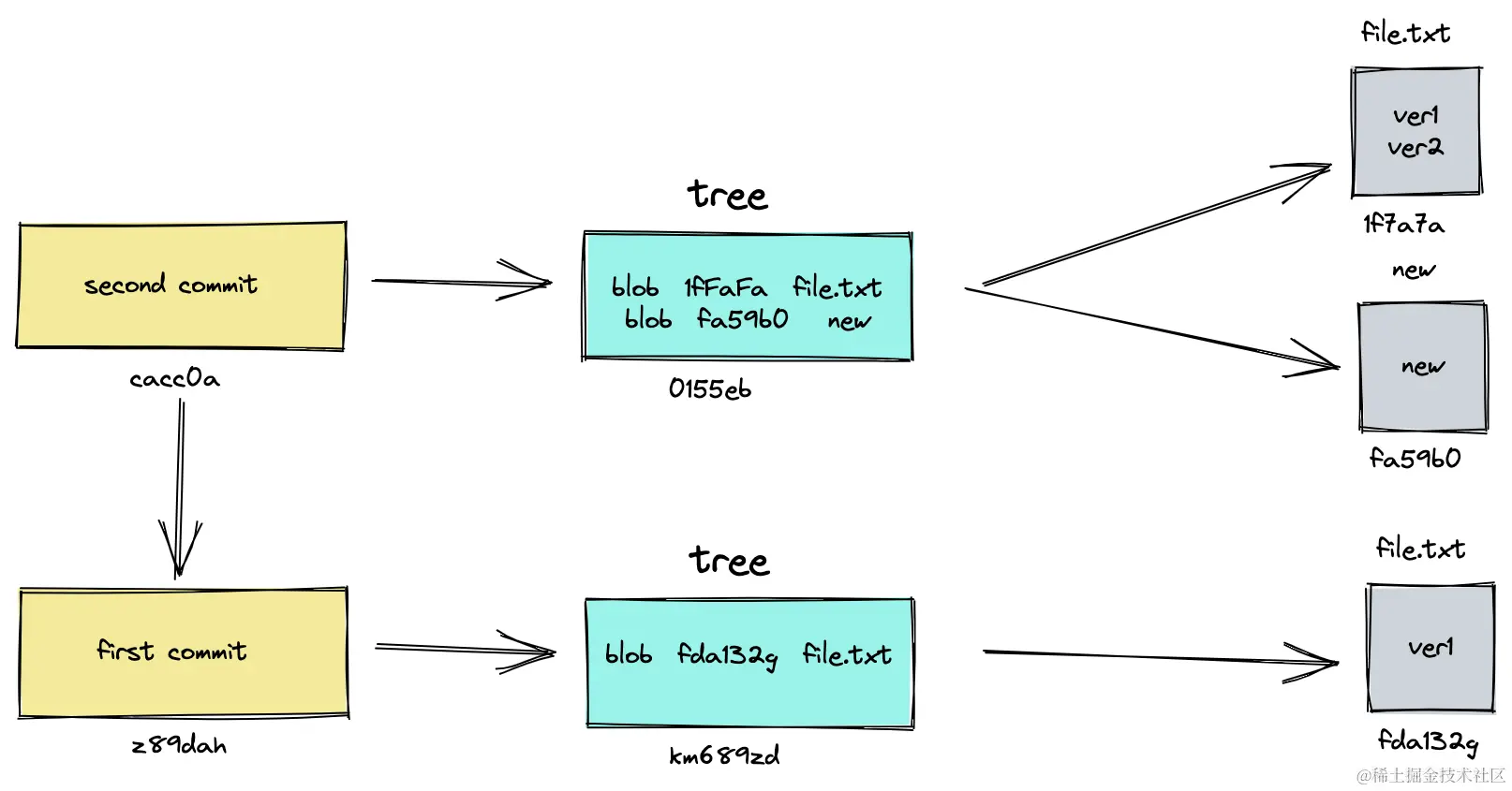 - tree本身的文件名也是sha-1的哈希值。