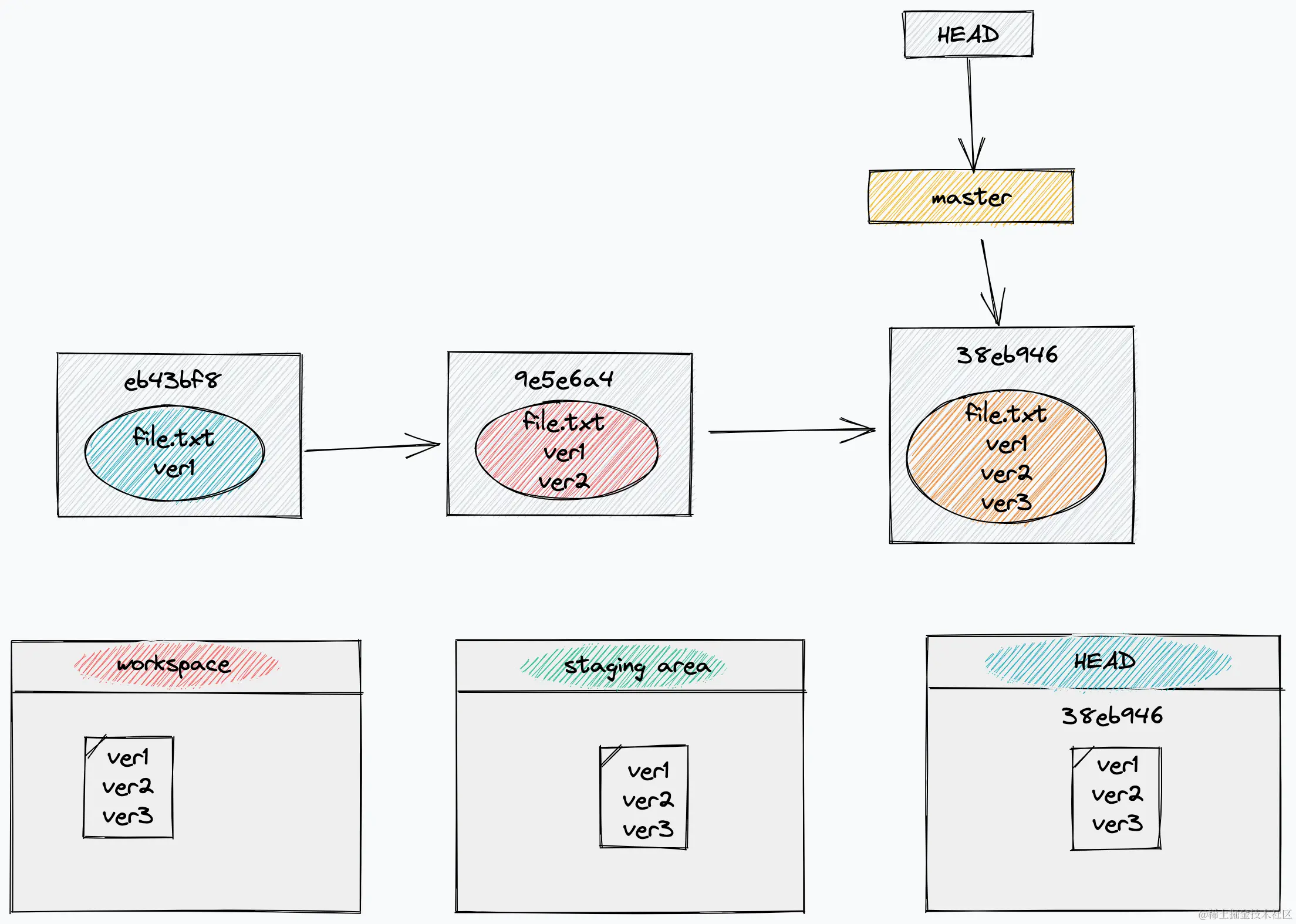 用来保存暂存区和工作区的文件内容