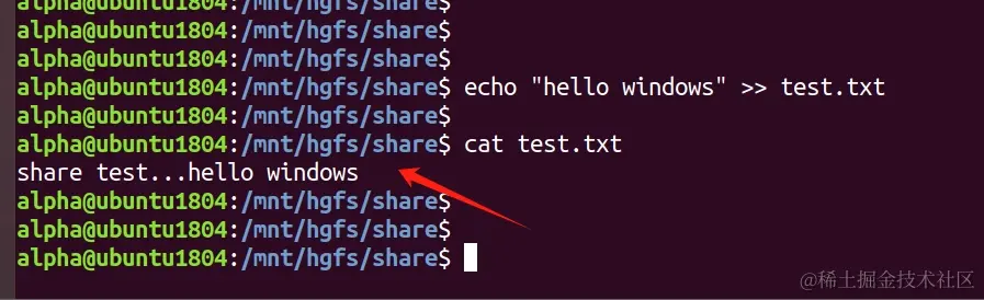- 在虚拟机中对共享文件做一些修改: