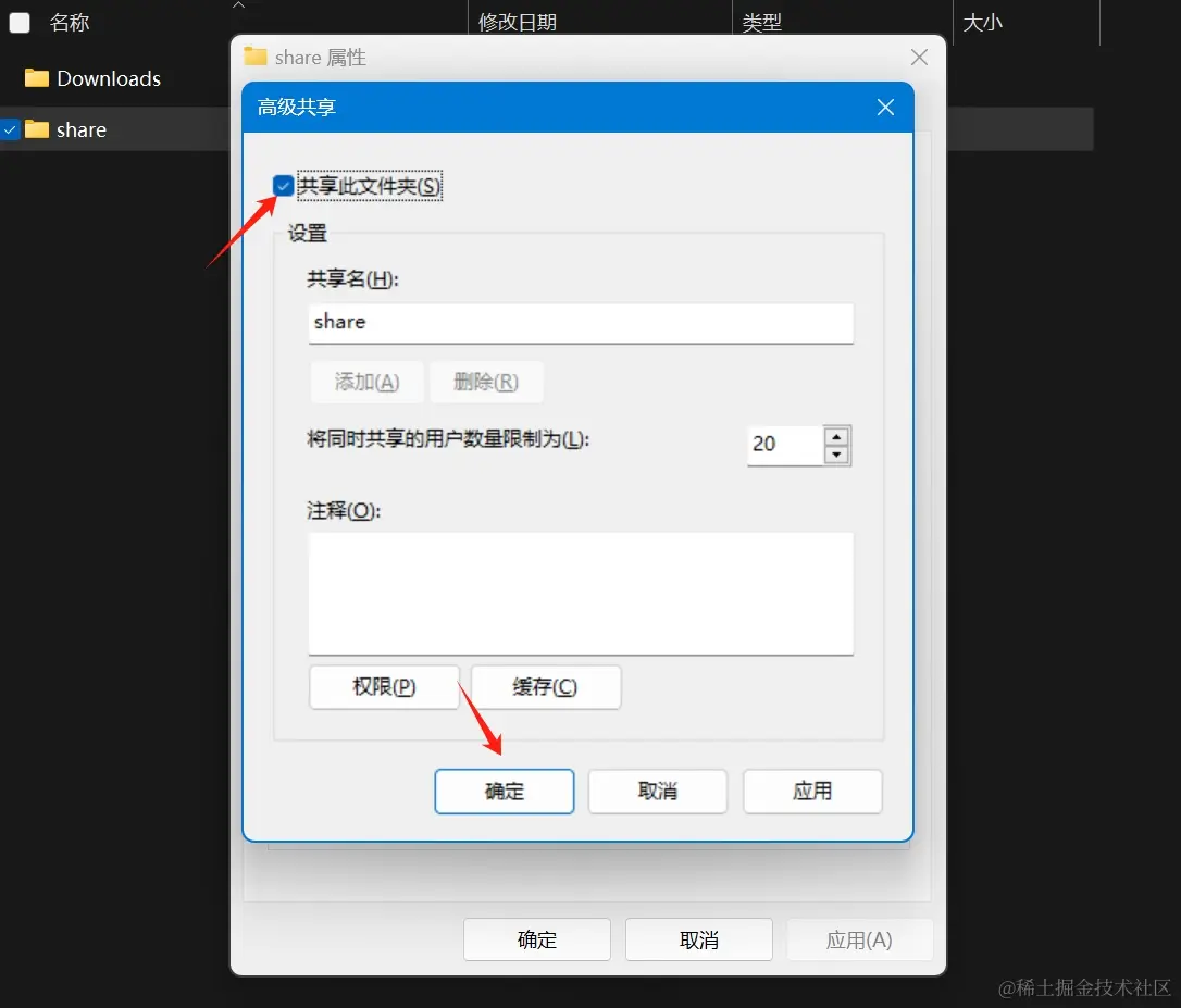 - 勾选共享此文件夹,点击确定: