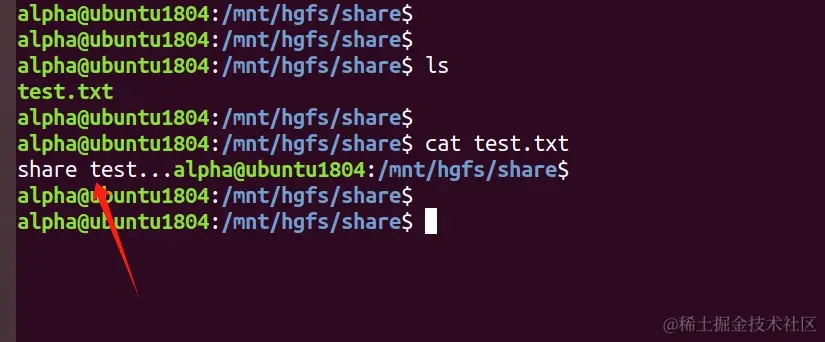 - 在虚拟机中查看共享文件夹中的共享文件及内容: