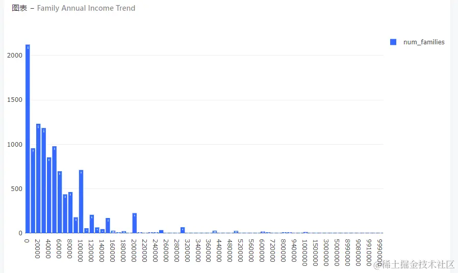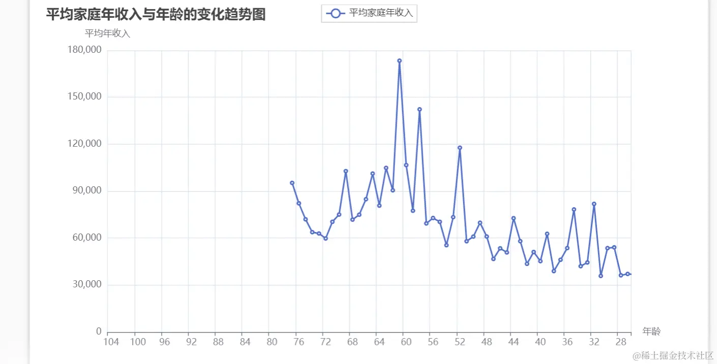 据DeepBI统计显示,年收入大多集中在0-100000区间,且以中等收入的家庭为主。并且,随着年龄的增长,其家庭年收入呈现下降的趋势。