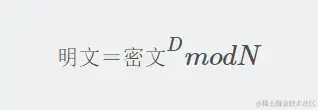 也就是说对密文进行D次方后除以N的余数就是明文,这就是RSA解密过程。知道D和N就能进行解密密文了,所以D和N的组合就是私钥