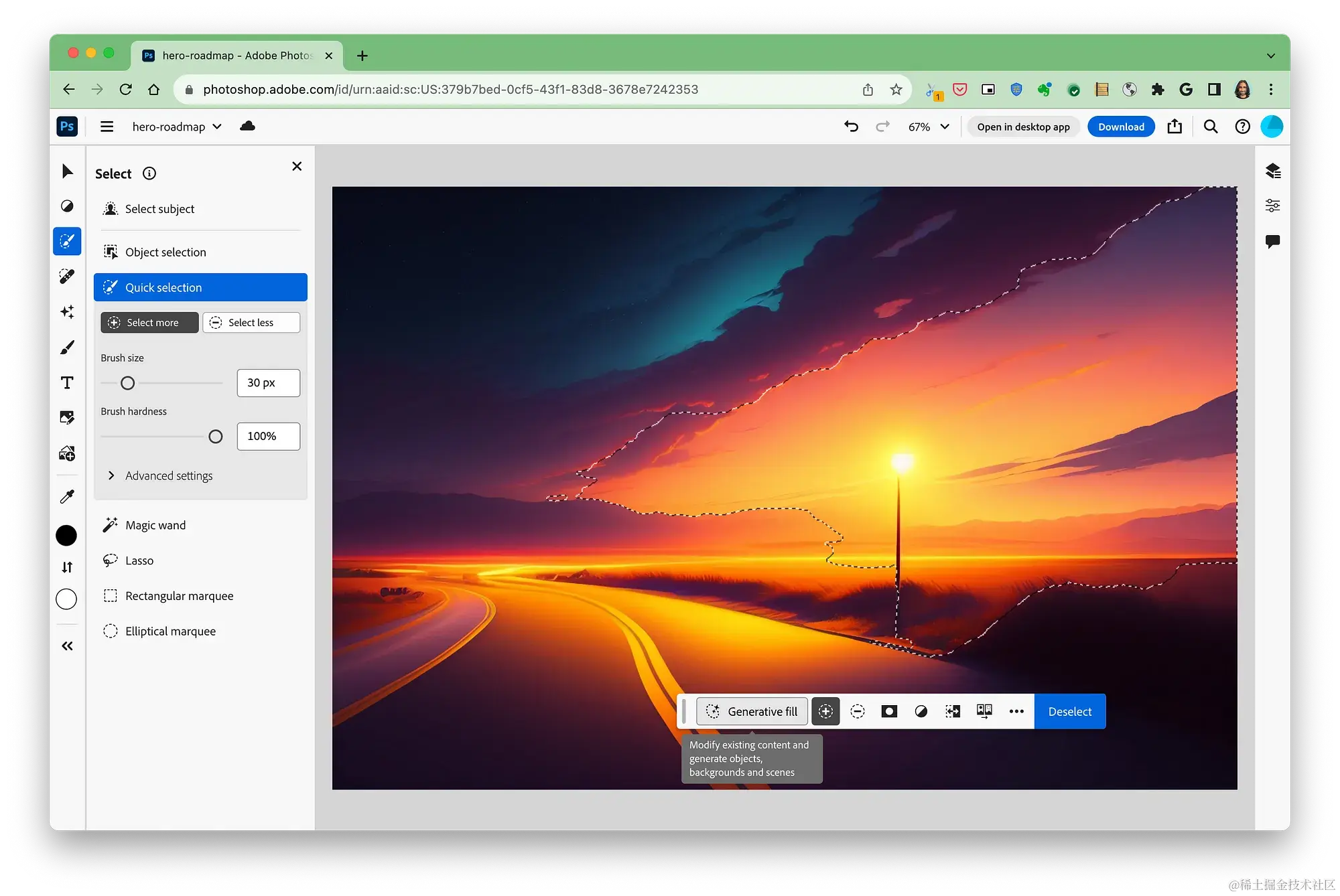 Adobe通过与浏览器供应商的合作,将桌面版Photoshop带到了Web上。这使用户可以直接从浏览器访问复杂的图形软件,无需安装。此外,Web版Photoshop还提供了高级功能,如生成填充。这一成就不仅展示了新的Web能力的潜力,还为图像编辑和图形设计在浏览器中设定了新的标准。