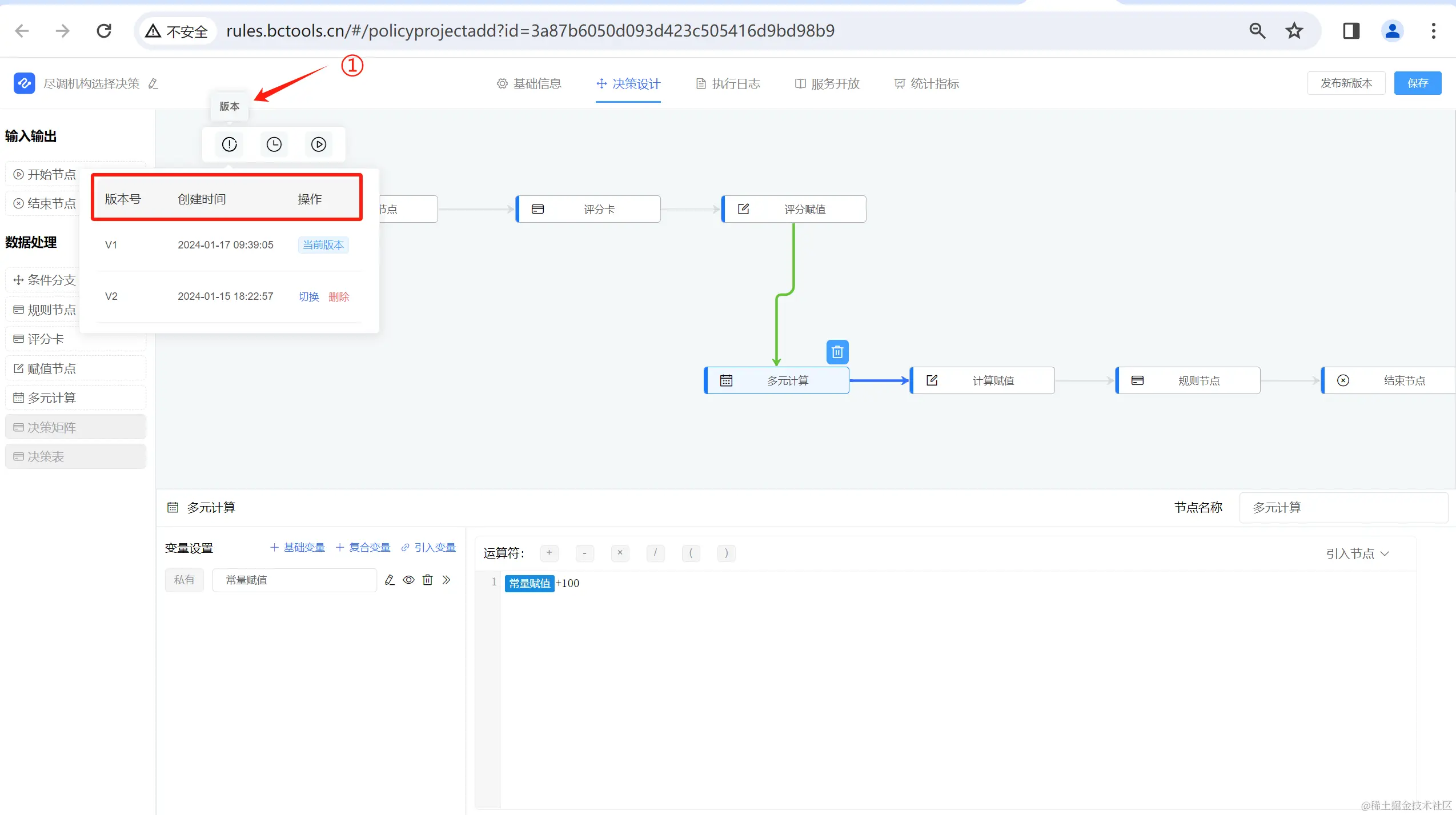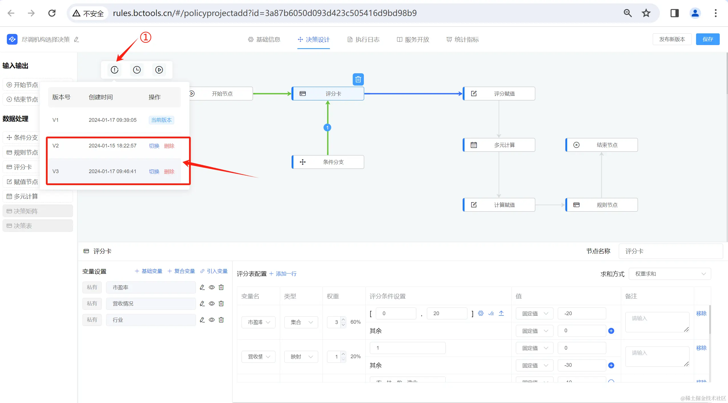 2. 增加版本切换功能,节点及变量将恢复至该版本内容;