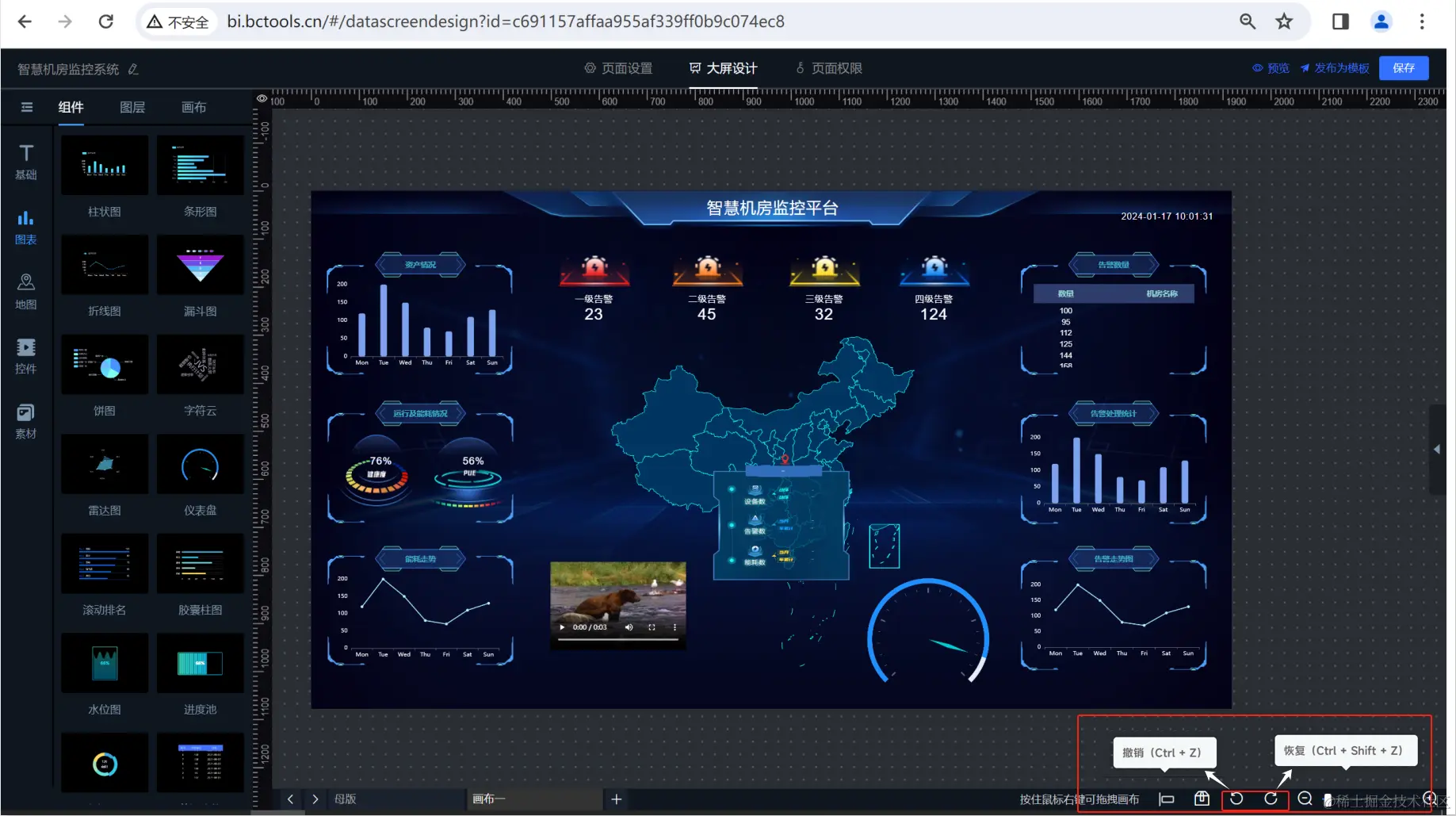 1.大屏新增恢复、撤销操作,撤销快捷键操作为Ctrl+Z,恢复快捷键操作为Ctrl+Shift+Z;