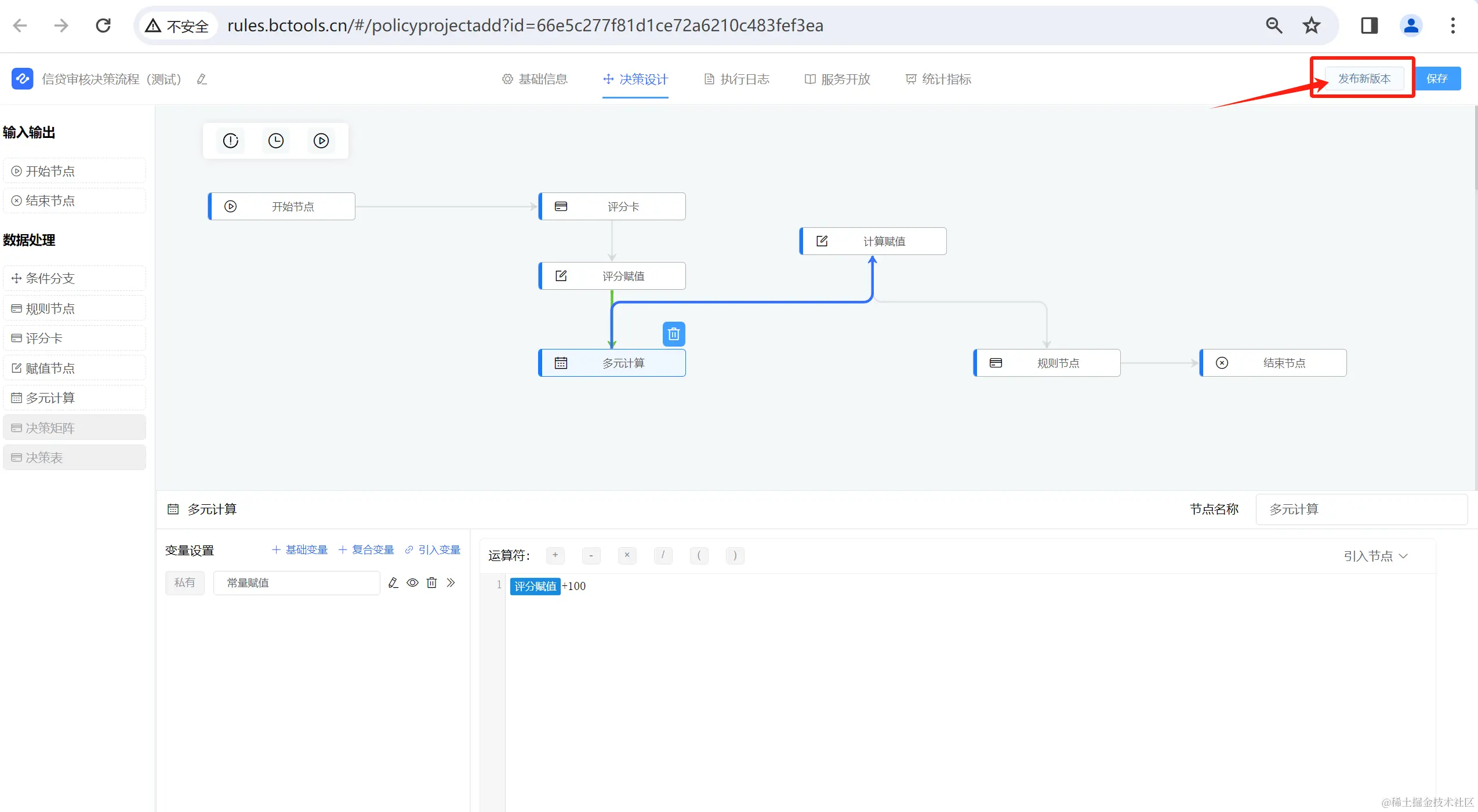 规则引擎的决策流版本控制是一种用于管理规则版本的功能。它允许用户追踪和管理规则的变更,从而更好地管理规则的版本和回滚。通过决策流版本控制,用户可以创建和保存规则的不同版本,以便在需要时进行比较和回滚。这有助于确保规则的一致性和可追溯性,并提高规则管理的效率和准确性。