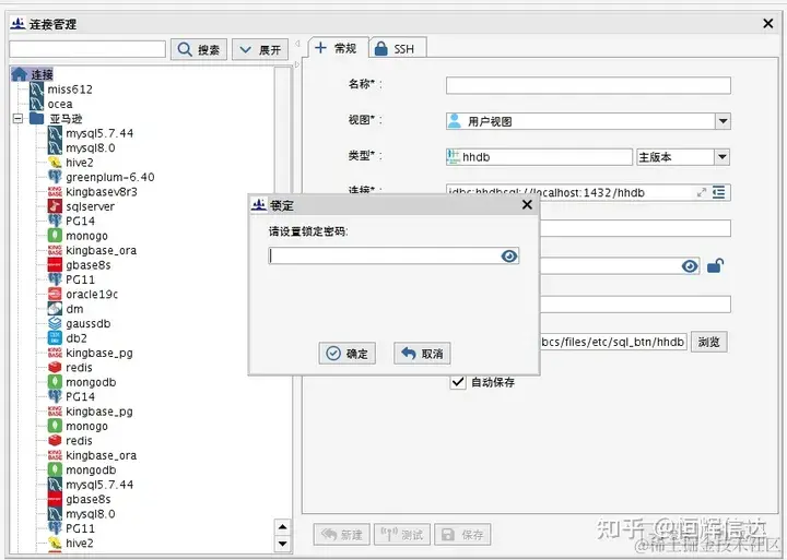 可对连接进行锁定,设置密码后;之后需要输入密码才能查看及操作连接。