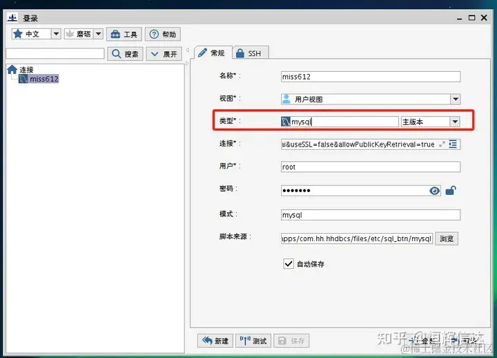 打开HHDBCS,选择Mysql数据库,填写用户信息;