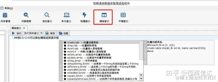根据提示ctrl+h弹出模板框,选择需要的命令;