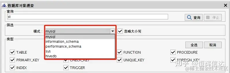 对象搜索功能能轻松搜索到数据库对象并对其进行相应操作。