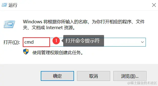 步骤2:在运行窗口中输入【cmd】 ,然后点击【确定】 ;