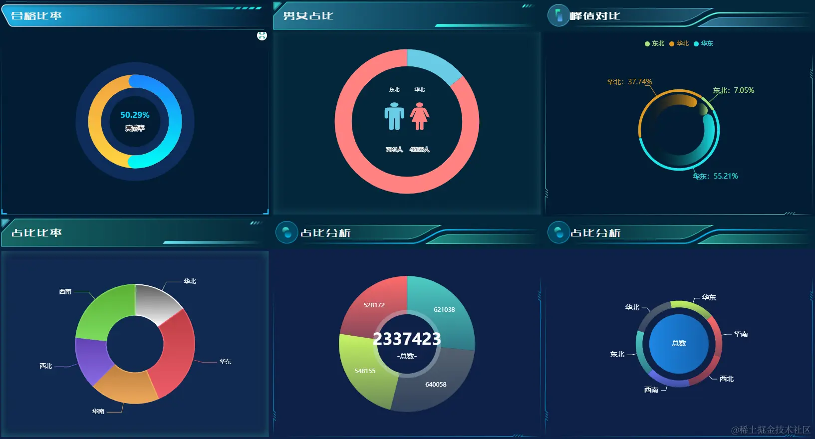 除了可以DIY之外,为了能够快速获取高级的图表UI效果,Wyn商业智能还提供了很多现成的模板,这些模板可以直接拖入组件模板库的组件并复用,提高仪表板创建的效率和美观度。