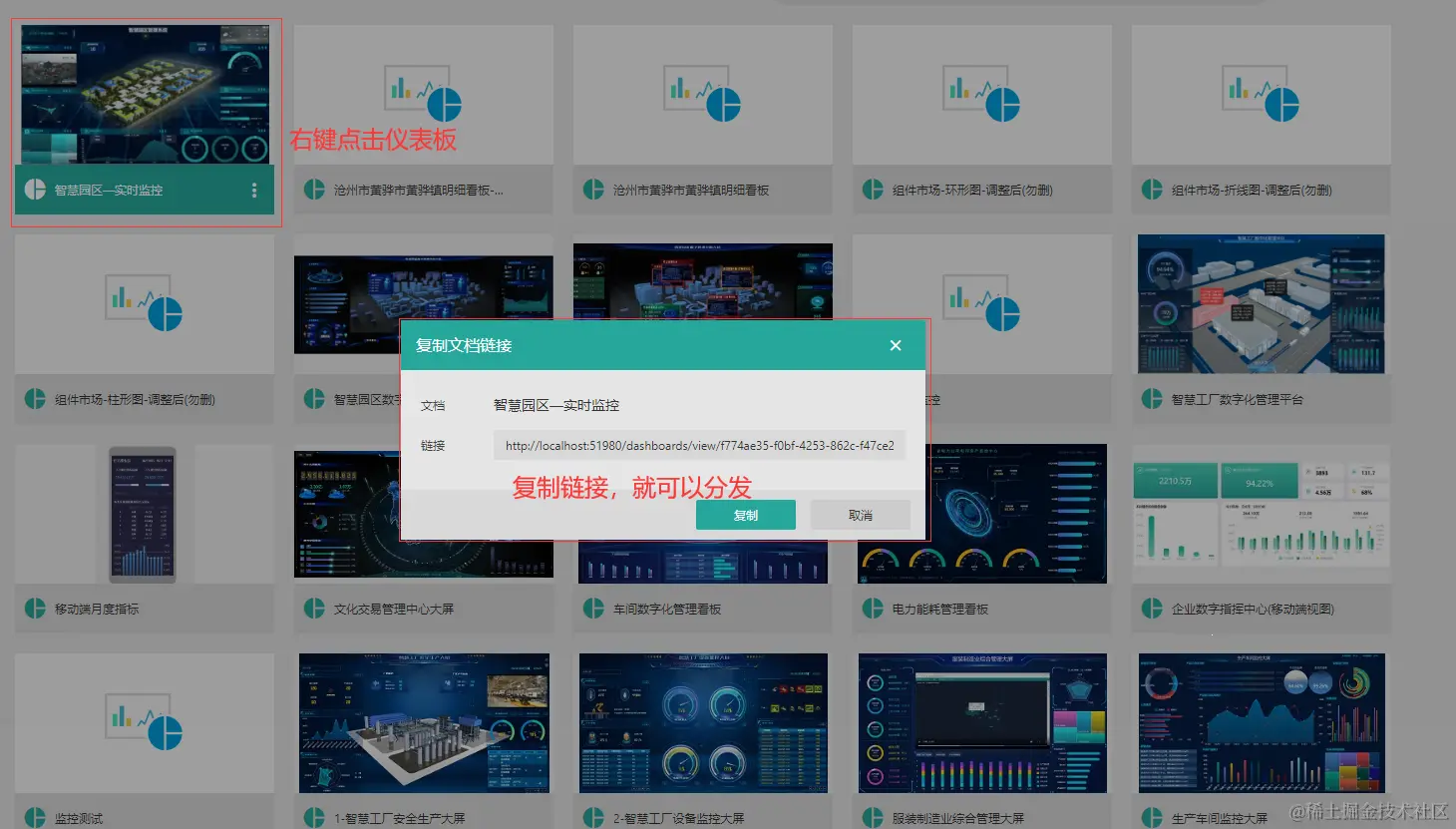 做好的仪表板和大屏最新是需要分发出来,在其他的系统或者网页中进行大屏的预览展示。那么使用Wyn做好的仪表板大屏分发集成起来非常简单,做好的每一张仪表板分发的时候就是分发出来一个Url链接,用户只需要查看该链接即可。