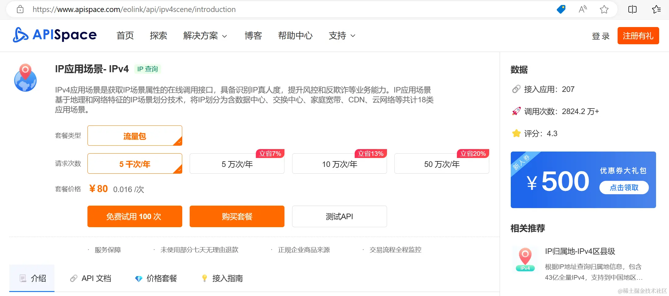 APISpace 的 IP应用场景接口,不仅可以查询 IPv4 的应用场景,还可以查询 IPv6 的应用场景;查询指定IP地址的应用场景属性,具备识别IP真人度,提升风控和反欺诈等业务能力。IP应用场景基于地理和网络特征的IP场景划分技术,将IP划分为含数据中心、交换中心、家庭宽带、CDN、云网络等共计18类应用场景。