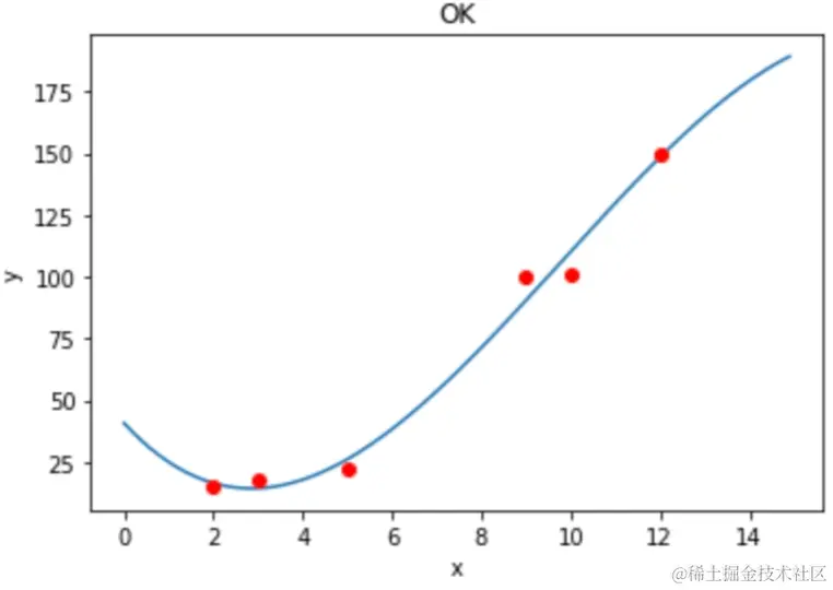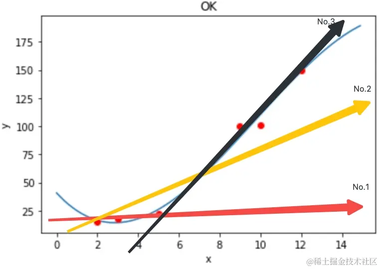 假设一个问题:红色的点为房屋售价和面积的分布,如何拟合这个解空间?