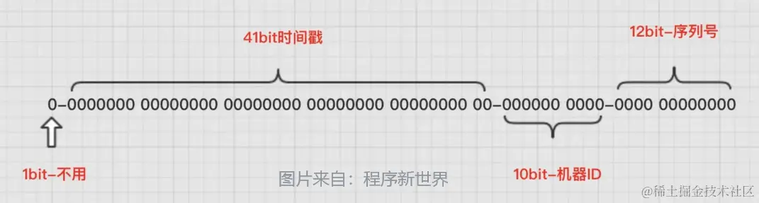 雪花 ID 的结构如下所示(共 64 位):