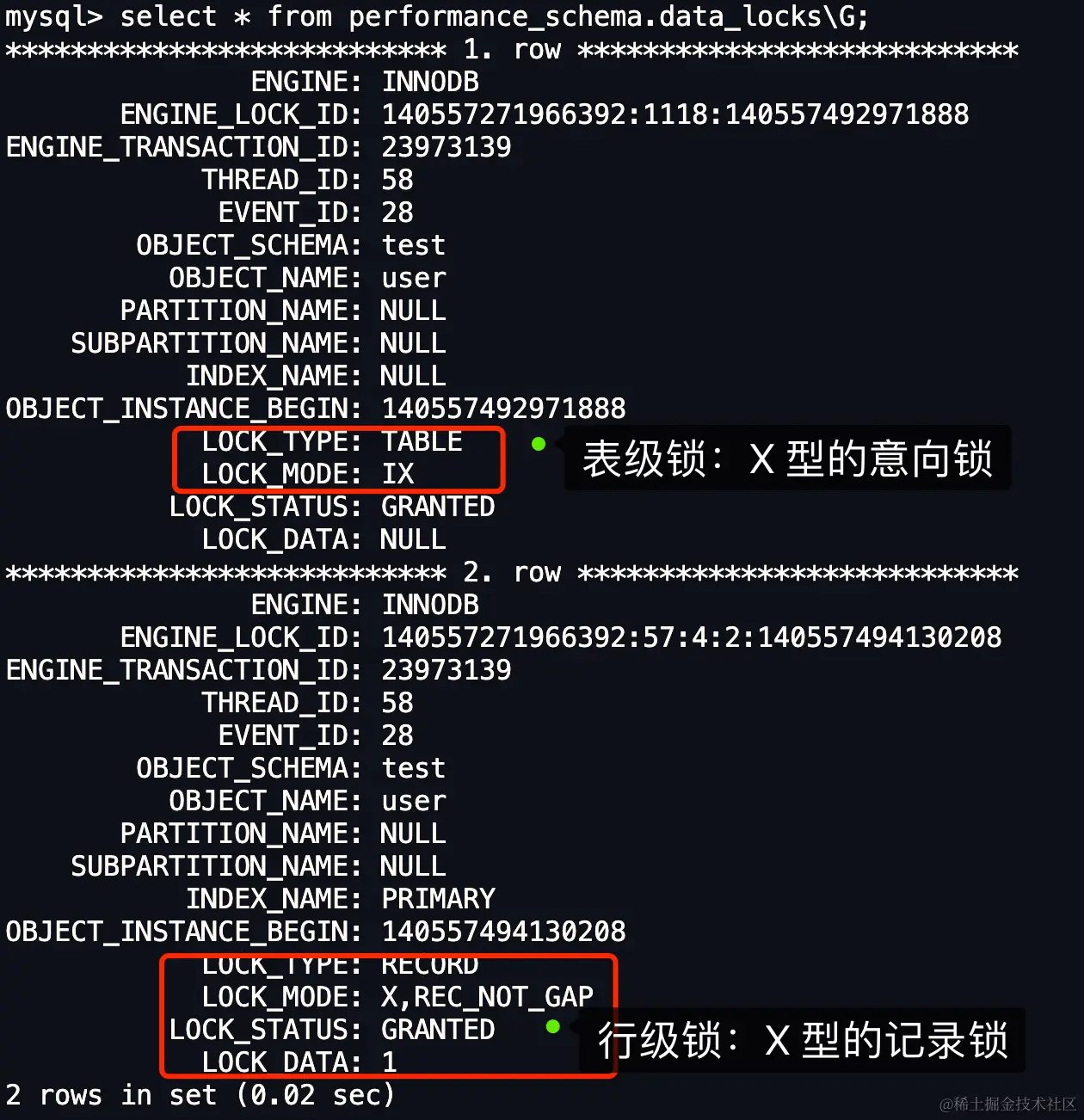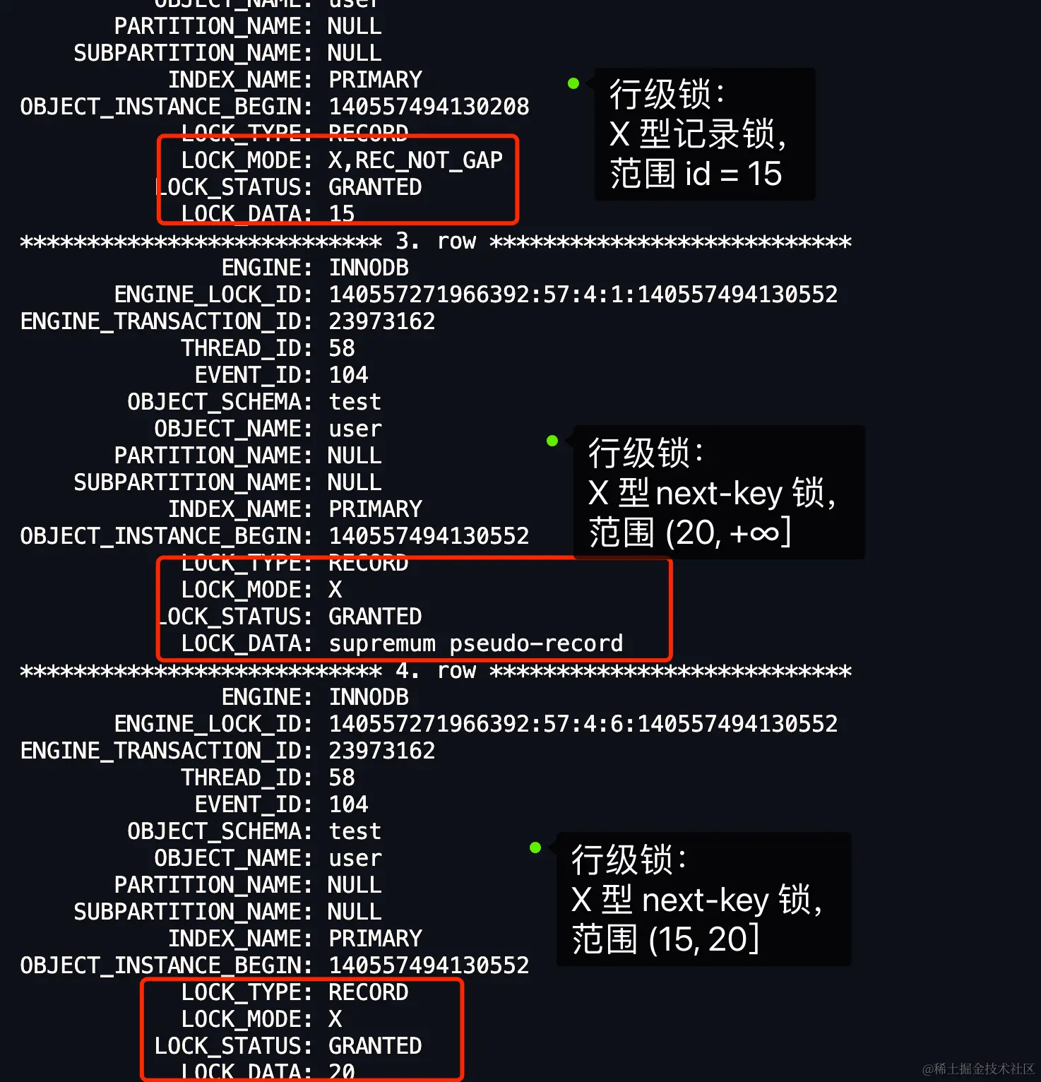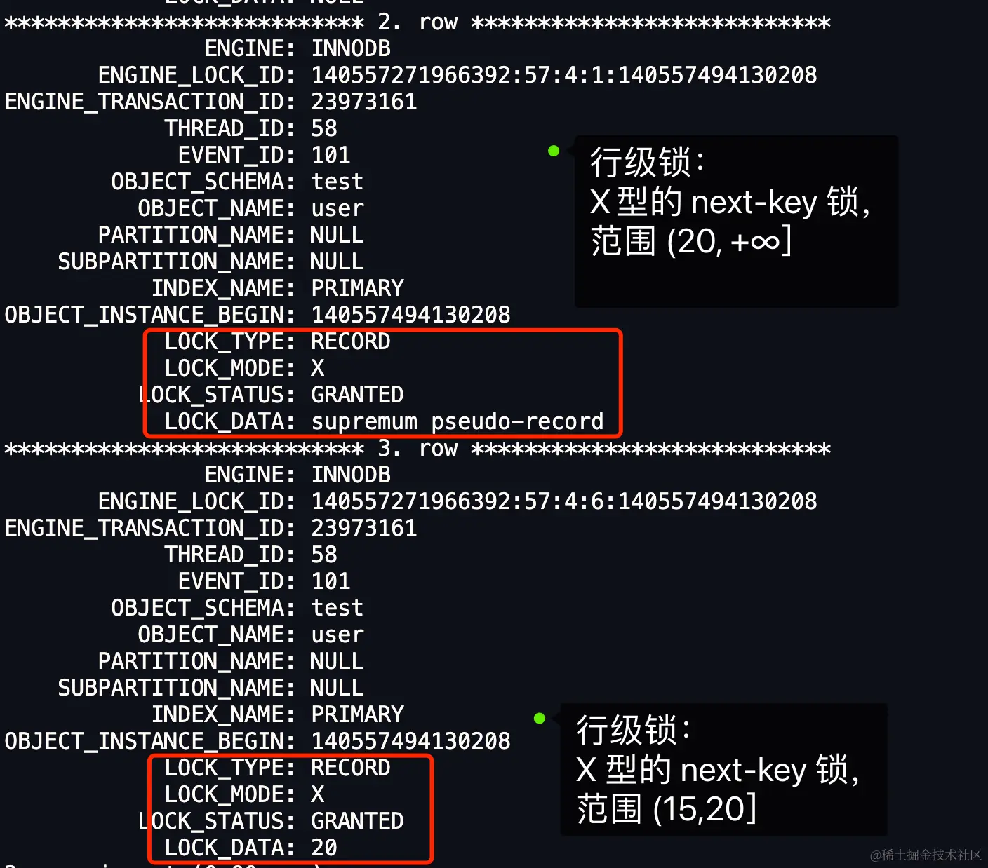 」。这个结论其实还不够准确,因为只考虑了 LOCK_DATA 个数值(39),没有考虑 LOCK_DATA 第二个数值(20)。
