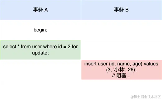 mysql> select * from user where id = 2 for update;