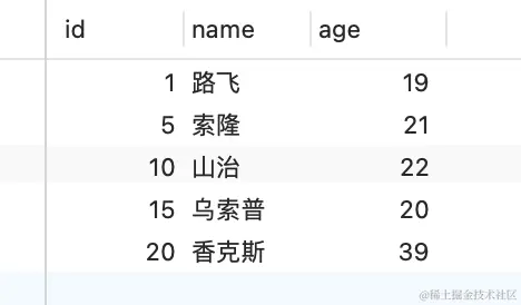 表中的有这些行记录: