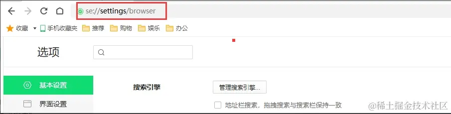 2.在浏览器输入框输入se://settings/browser访问进入到设置页面