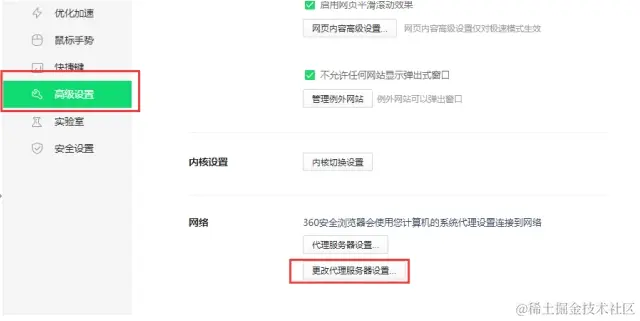 3.打开网络设置:在设置页面中,点击左侧菜单栏的"高级设置"选项,然后点击"更改代理服务器设置"。