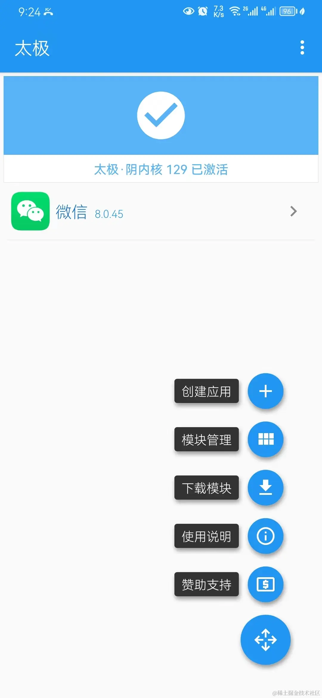 选择微信(太极框架可以在通过模块来增强任意App的功能,这里只是选择微信)