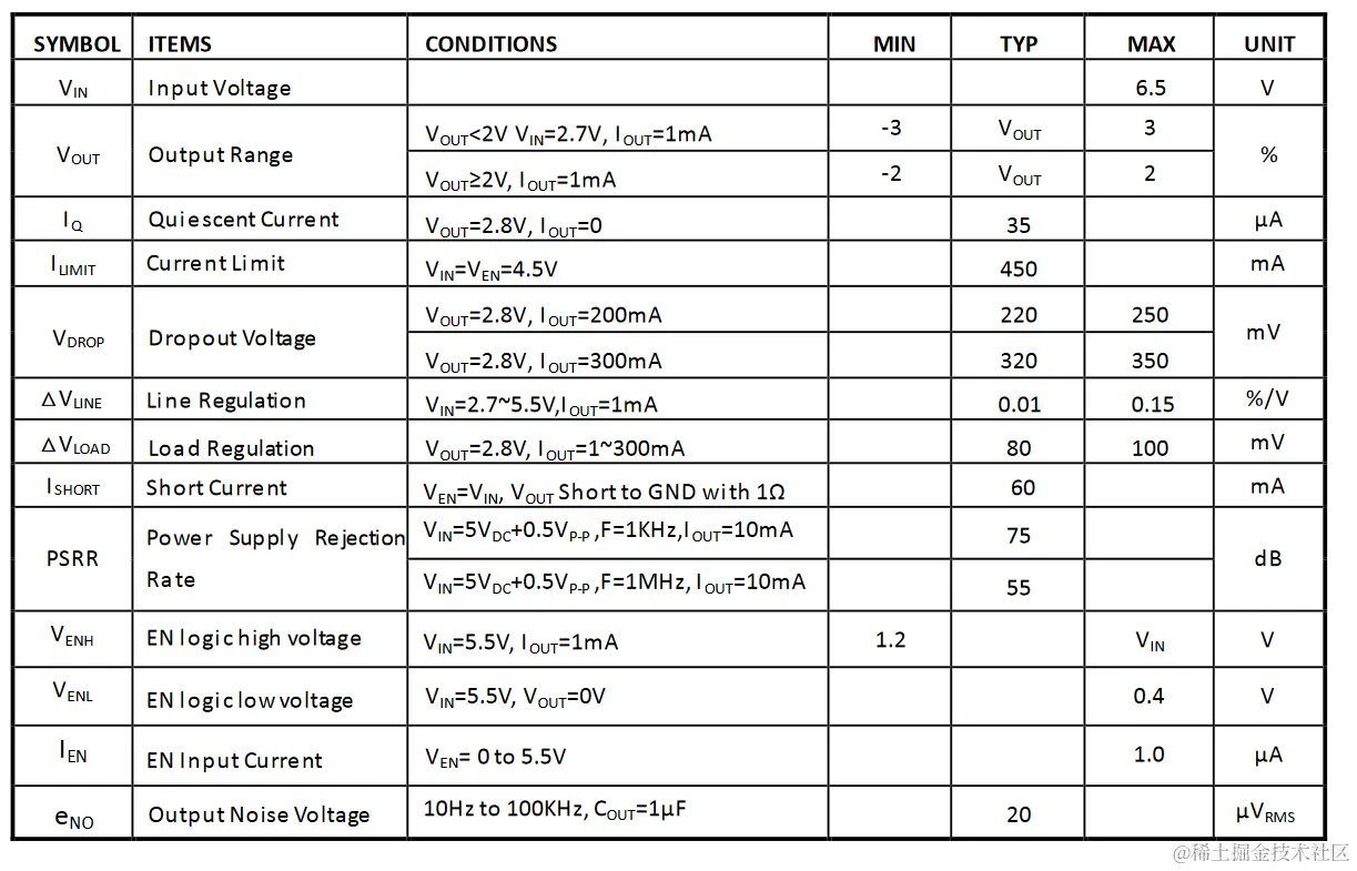 The following specifications apply for VOUT=2.8V,TA=25℃, unless specified otherwise.