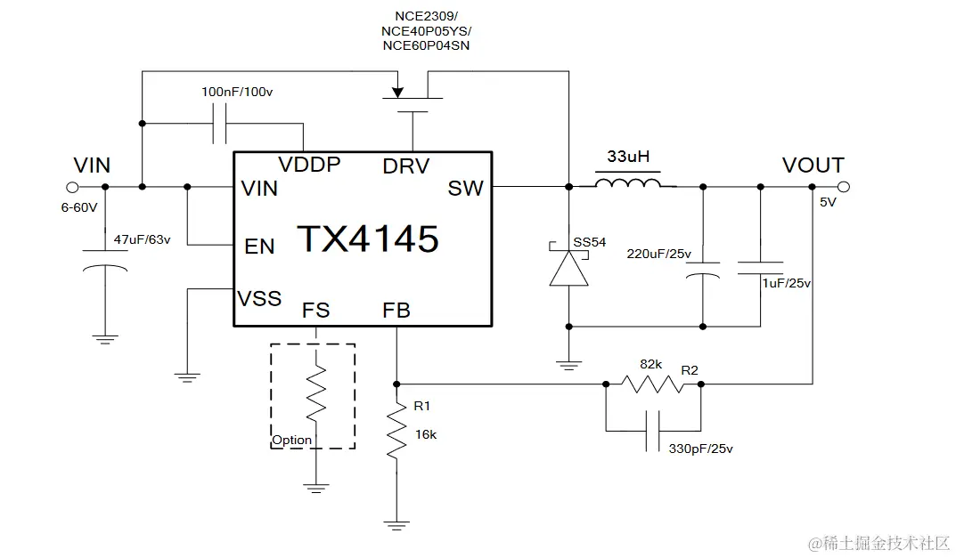 TX4145 是一款降压型开关模式转换器。TX4145 在 6-60V 宽输入电源范围内实现不同峰值输出电流,并且具有出色的线电压和负载调整率。