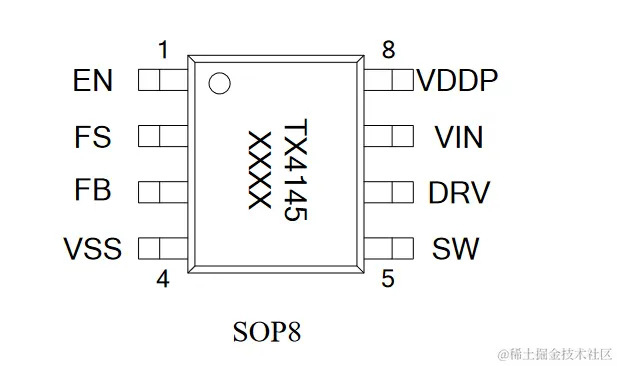 TX4145 采用 SOP8 封装,且外围元器件少。