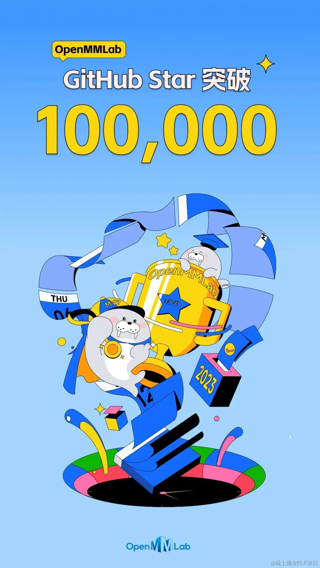 2023 年对于 OpenMMLab 来说是一个收获满满的年份。这一年,我们的代码仓库总下载量近 1000 万次,GitHub 星标数超过 10 万,达到了一个新的里程碑。