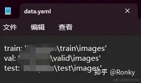 6.使用记事本打开data.yaml文件,windows系统最好将路径修改成绝对路径,该路径指向刚才下载的压缩包解压后的文件夹路径: