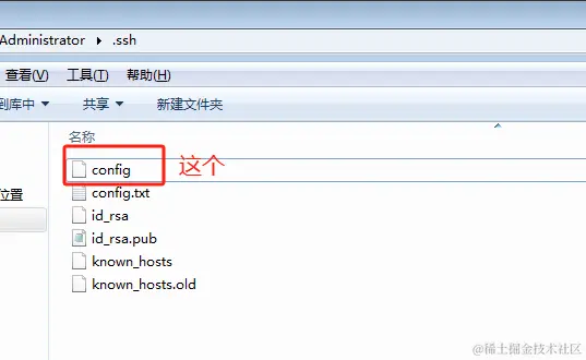 - 在该文件夹里,新建文件 config (不要后缀 .txt)
