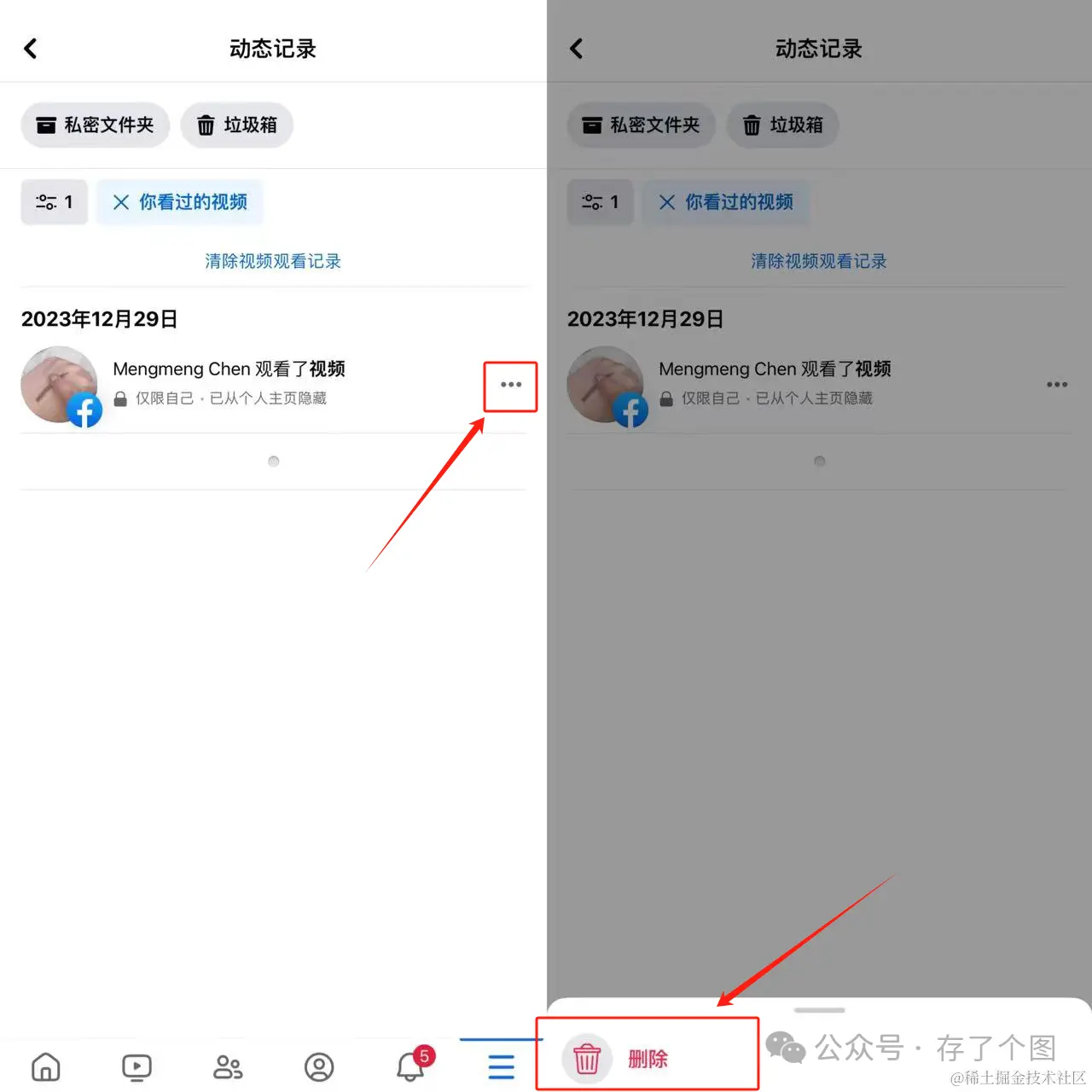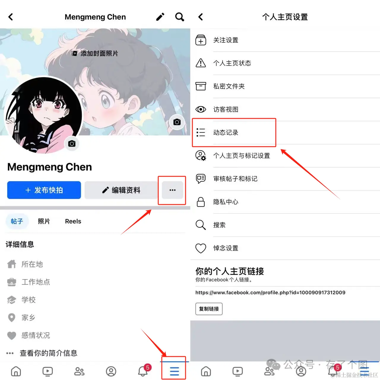 在脸书的个人主页点击“...”,然后点击“动态记录”
